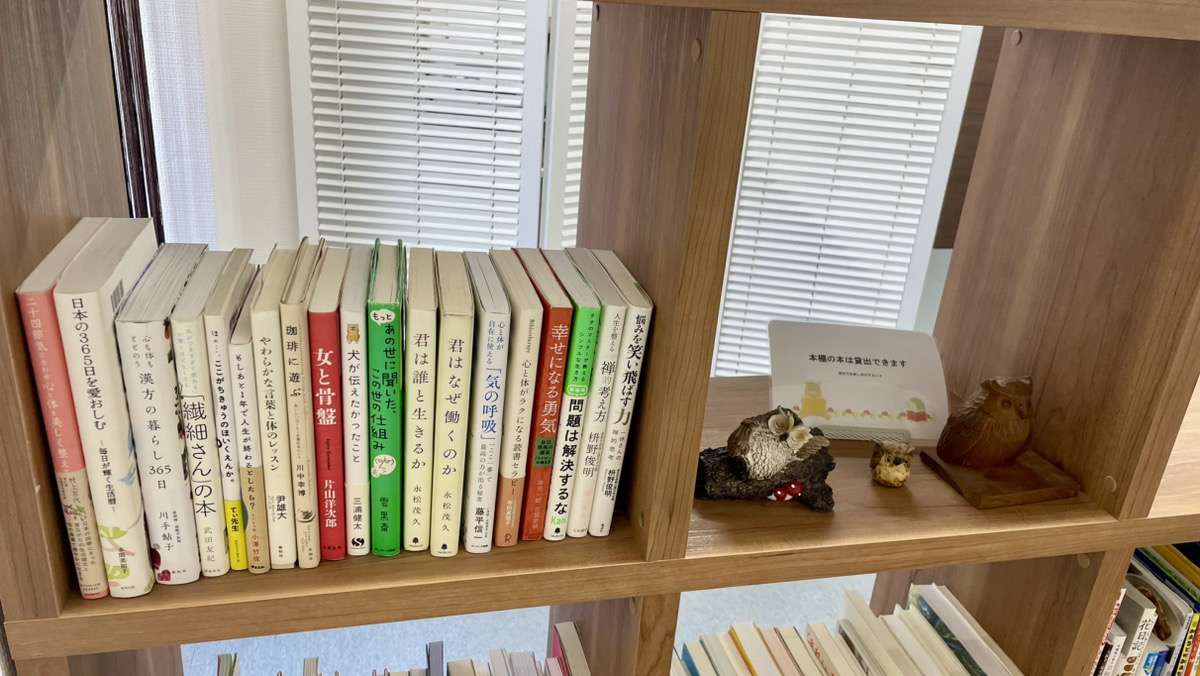 当院の小さな図書館は貸出が出来ますので、